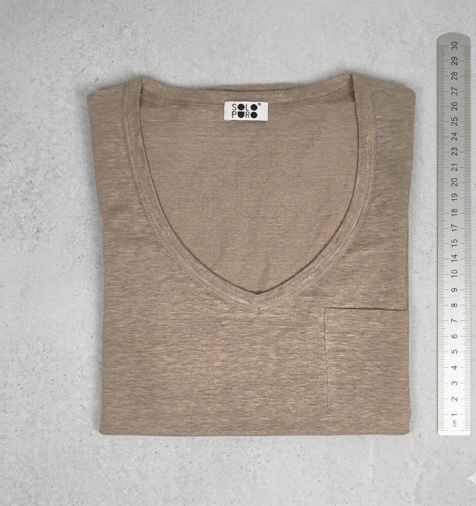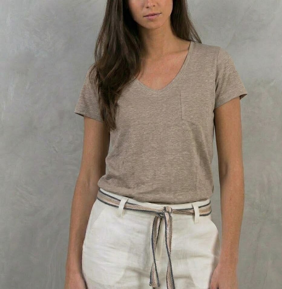 It’s our basic t-shirt with short sleeves, scoop neck and small pocket.