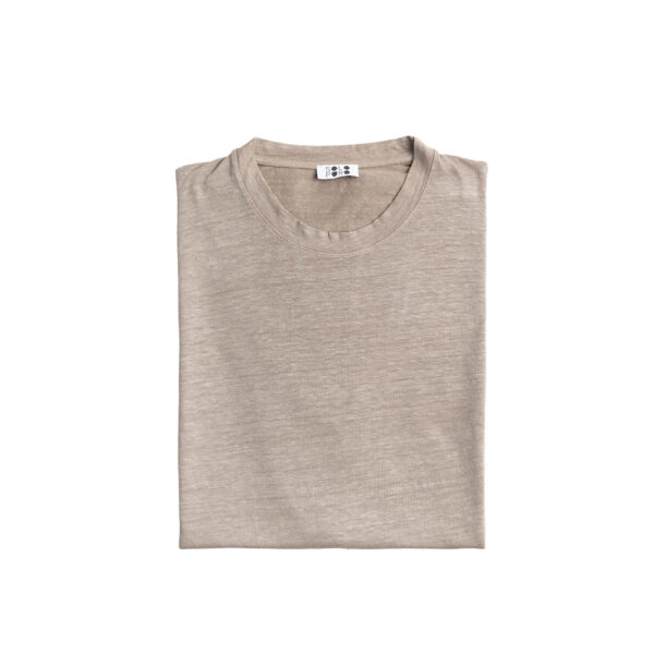 T-shirt in jersey di lino elast. Girocollo, manica corta e vestibilità regolare